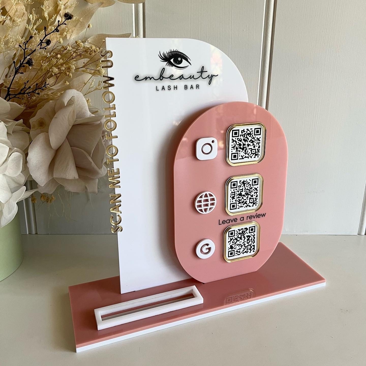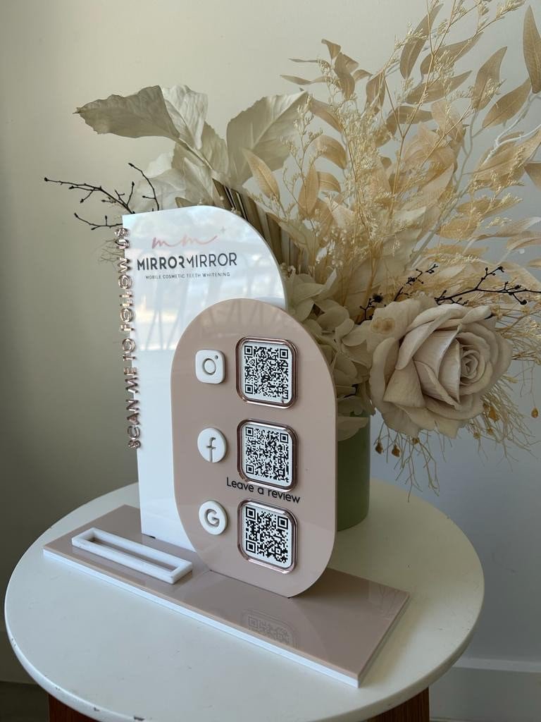 We created this custom acrylic QR Code Sign to make your business presentation more chic, unique, and quickly recognizable! It’s a powerful visual tool for small businesses who want to grow their reach while staying stylish and professional.